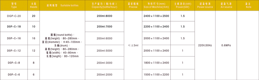 DGP-C直列式常壓灌裝機技術參數(shù)