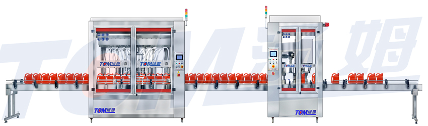 本流水線適用于潤滑油、防凍液、液蠟、清洗劑等物料的定量灌裝和旋蓋。
